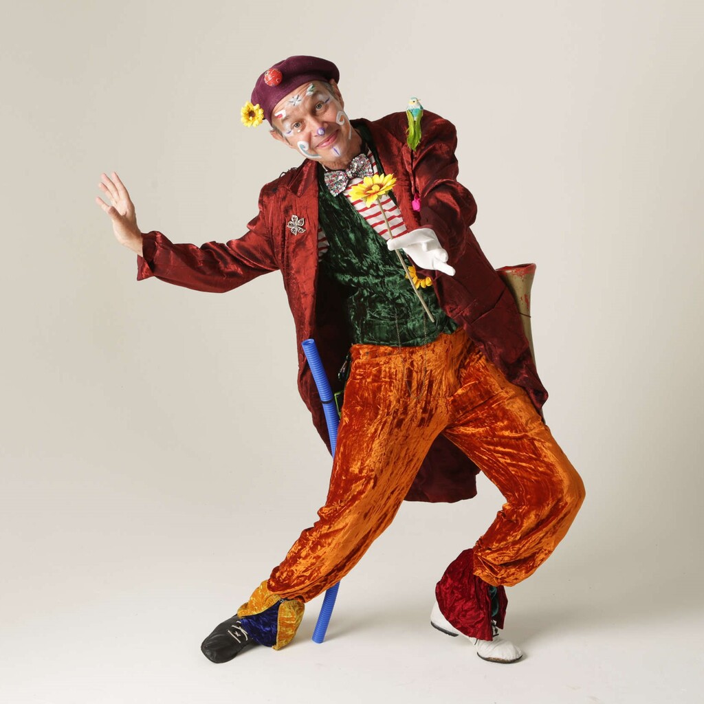 Jyjou est un artiste polyvalent, fruit du clown, du mime, de la magie et des fleurs.